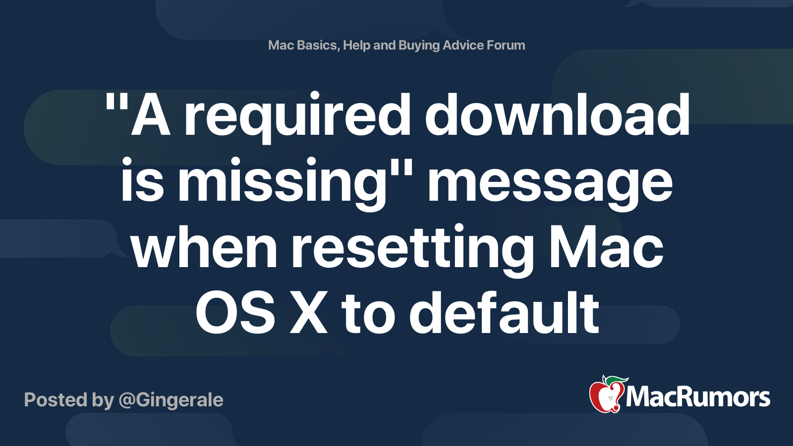 Mavericks a required download is missing. I have a 20 early 2008 imac with 4gb ram and 60 gb free space on my macintosh hd. The el capitan. If it helps i m using a 15 early 2011 macbook pro.